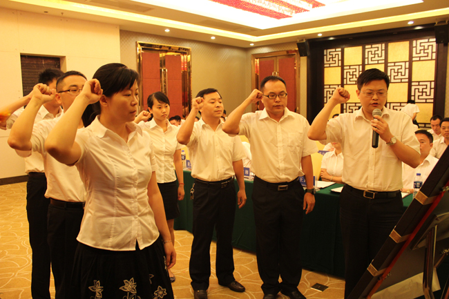6月29日上午,中共线上买球官网(中国)官方网站集团股份有限公司委员会2012年新党员宣誓暨优秀党员表彰大会在长沙隆重举行。大会在庄严的《国歌》声中开幕。党委全体成员、公司全体党员、入党积极分子参加了会议。会议由刘健同志主持。