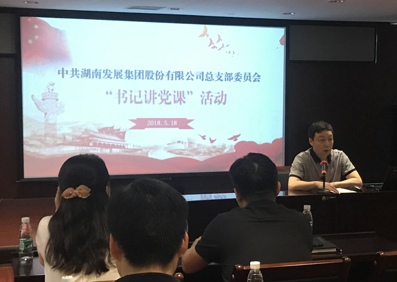 2018年5月18日下午,根据湖南省国资委系统“千名书记讲党课”活动部署,公司党总支开展了以“学习贯彻习近平新时代中国特色社会主义思想和党的十九大精神”为主题的支部书记集中讲党课活动。党总支书记、总部直属三个支部及线上买球官网(中国)官方网站侨亚党支部书记分别为大家上了一节党课。本次党课活动由公司党总支委员、监事会主席黄志丹主持,总部及线上买球官网(中国)官方网站侨亚30余名党员参加了学习。