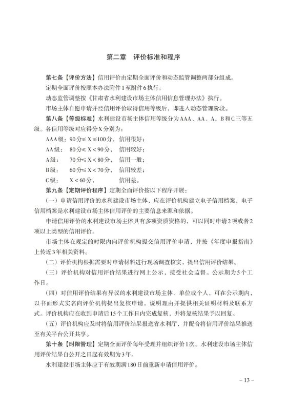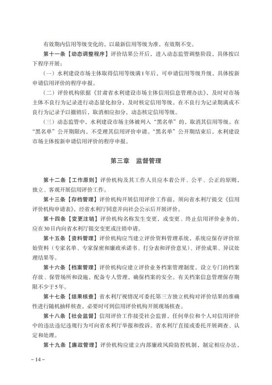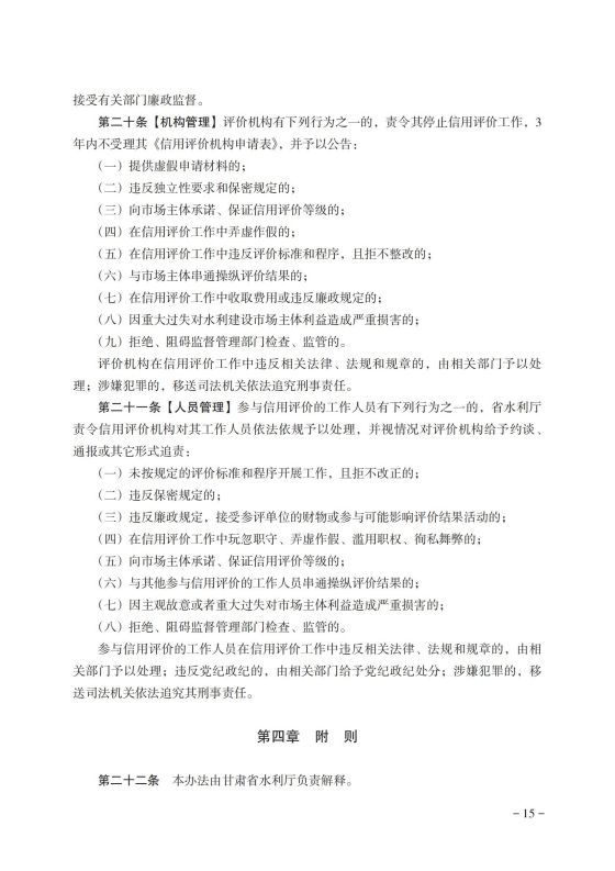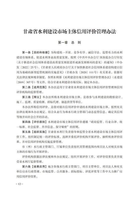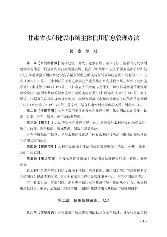 甘肃省水利厅关于印发《甘肃省水利建设 市场主体信用信息管理办法》《甘肃省水利建设 市场主体信用评价管理办法》的通知