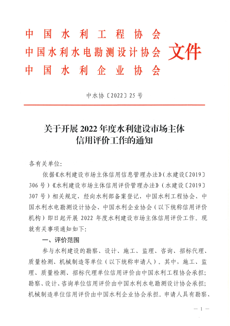 转发:《关于开展2022年度水利建设市场主体信用评价工作的通知》