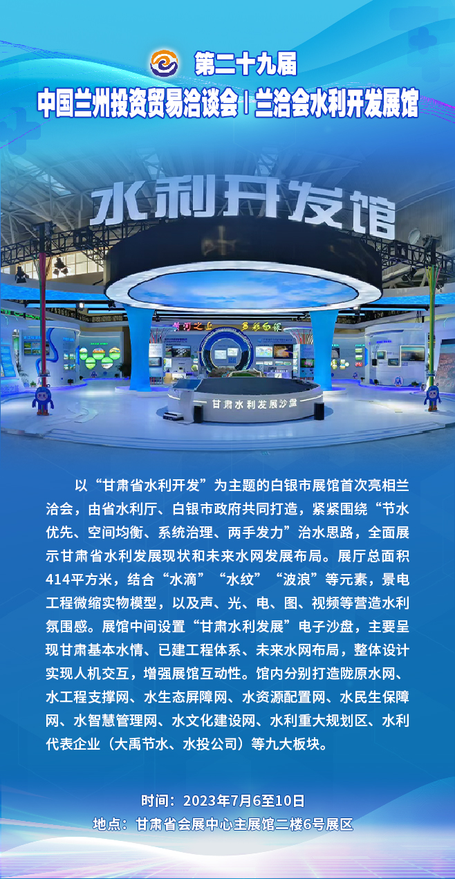第二十九届兰洽会“水利开发馆”7月6日起向公众开放